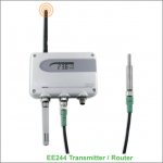 Protocolo IEEE 802.15.4, 2,4 GHz, rango de campo abierto de 1000 m. En una carcasa robusta con antena externa y pantalla opcional, EE244 admite hasta tres sondas intercambiables y enchufables para temperatura, humedad y CO2.